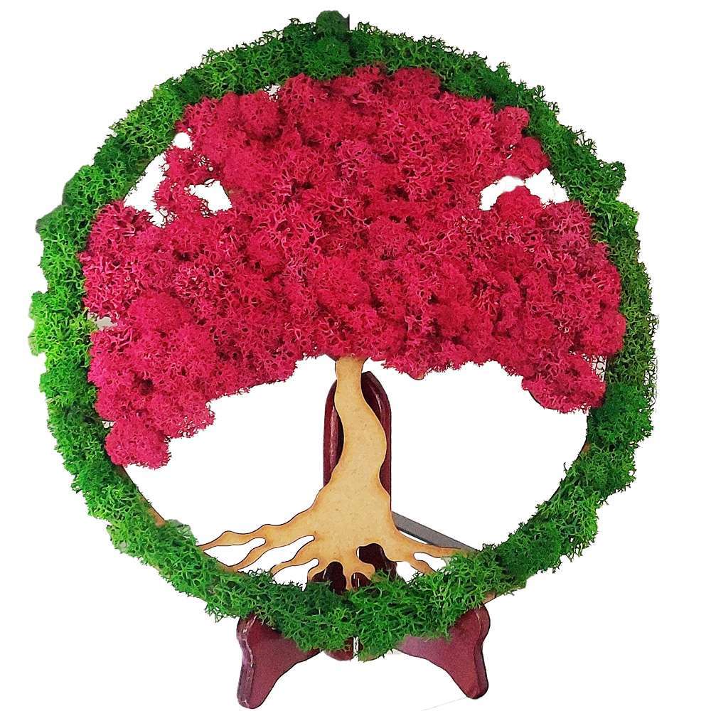 Il nostro quadro vegetale Albero della Vita Tramonto si distingue per la straordinaria combinazione di licheni stabilizzati rossi per la chioma e verdi per la cornice circolare. Ogni elemento è stato selezionato e posizionato a mano dai nostri artigiani per creare un effetto tridimensionale di grande impatto. Il tronco, lavorato in legno naturale con dettagli meticolosi, completa questa composizione unica che fonde arte e natura in una celebrazione della vita.